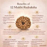 A sacred Rudraksha with 12 natural lines (mukhis). Indonesian beads are smaller, smoother, and comfortable to wear daily. Represents Lord Surya.Symbol of leadership, confidence, and divine energy.