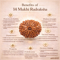 A sacred Rudraksha with 14 natural lines (mukhis). Indonesian beads are smaller, smoother, and easier to wear daily. Represents Lord Hanuman.Symbol of victory, confidence, and spiritual strength.