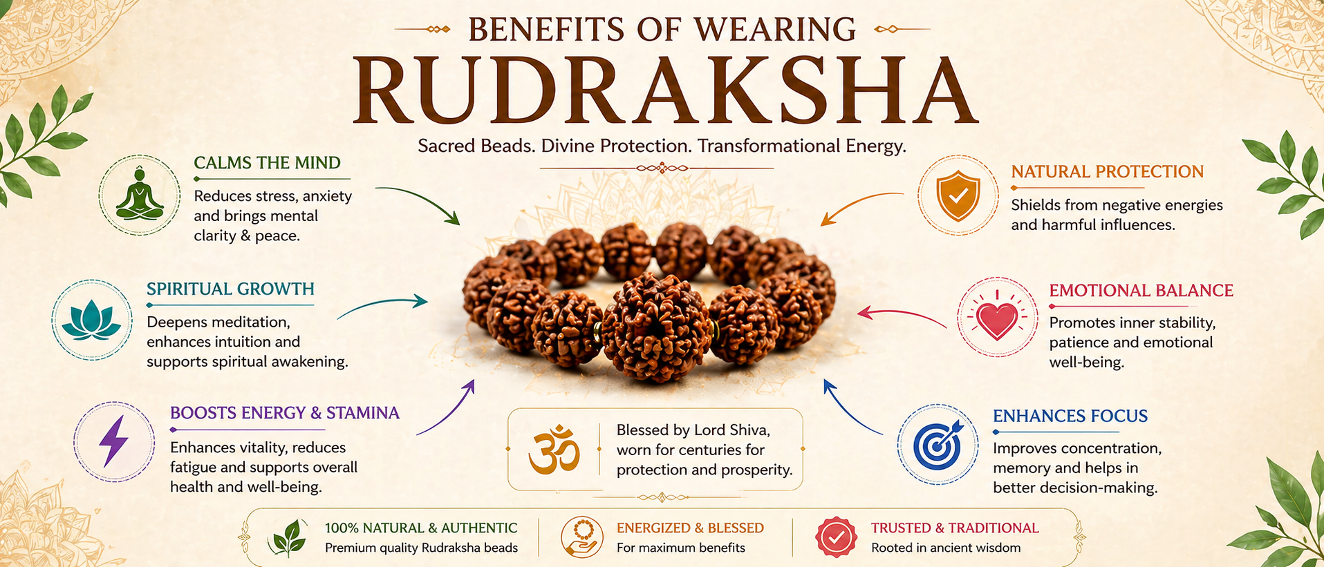Vaijayanti Mala is made from sacred Vaijayanti (forest) seeds and is strongly associated with Lord Vishnu and Lord Krishna. It is known as the “mala of victory,” symbolizing success, positivity, and divine blessings.